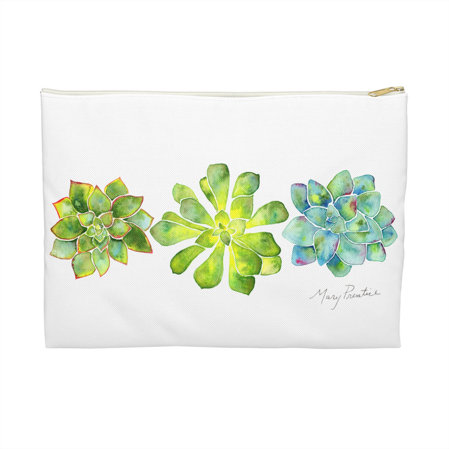 Bright Cheerful Succulents Accessory Pouch-watercolor original by Mary Prentice